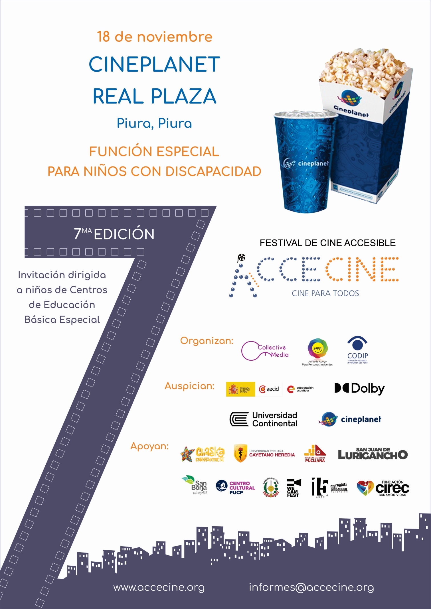 Gracias al apoyo de Cineplanet realizaremos funciones especiales en siete salas de cine de Lima y regiones.