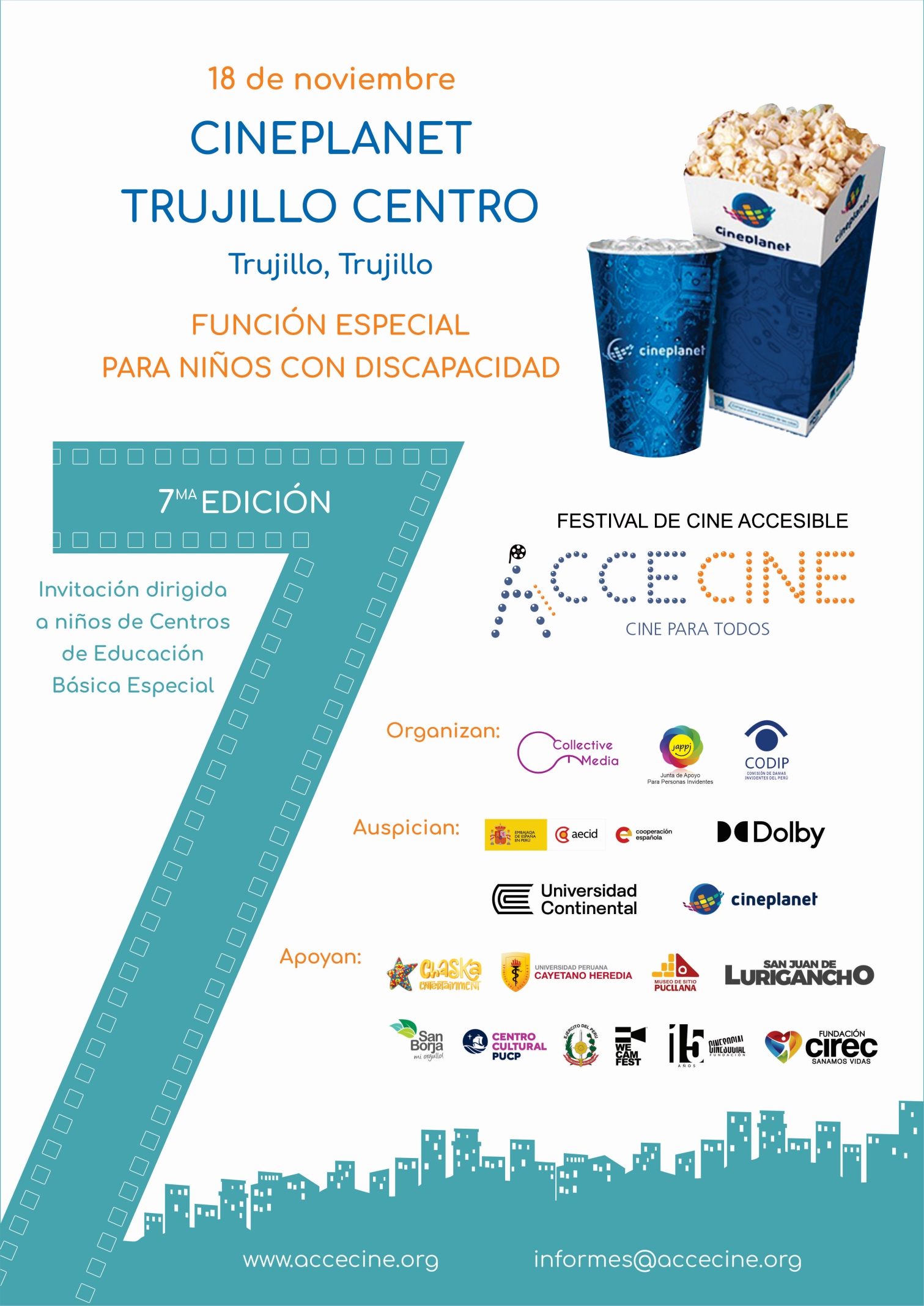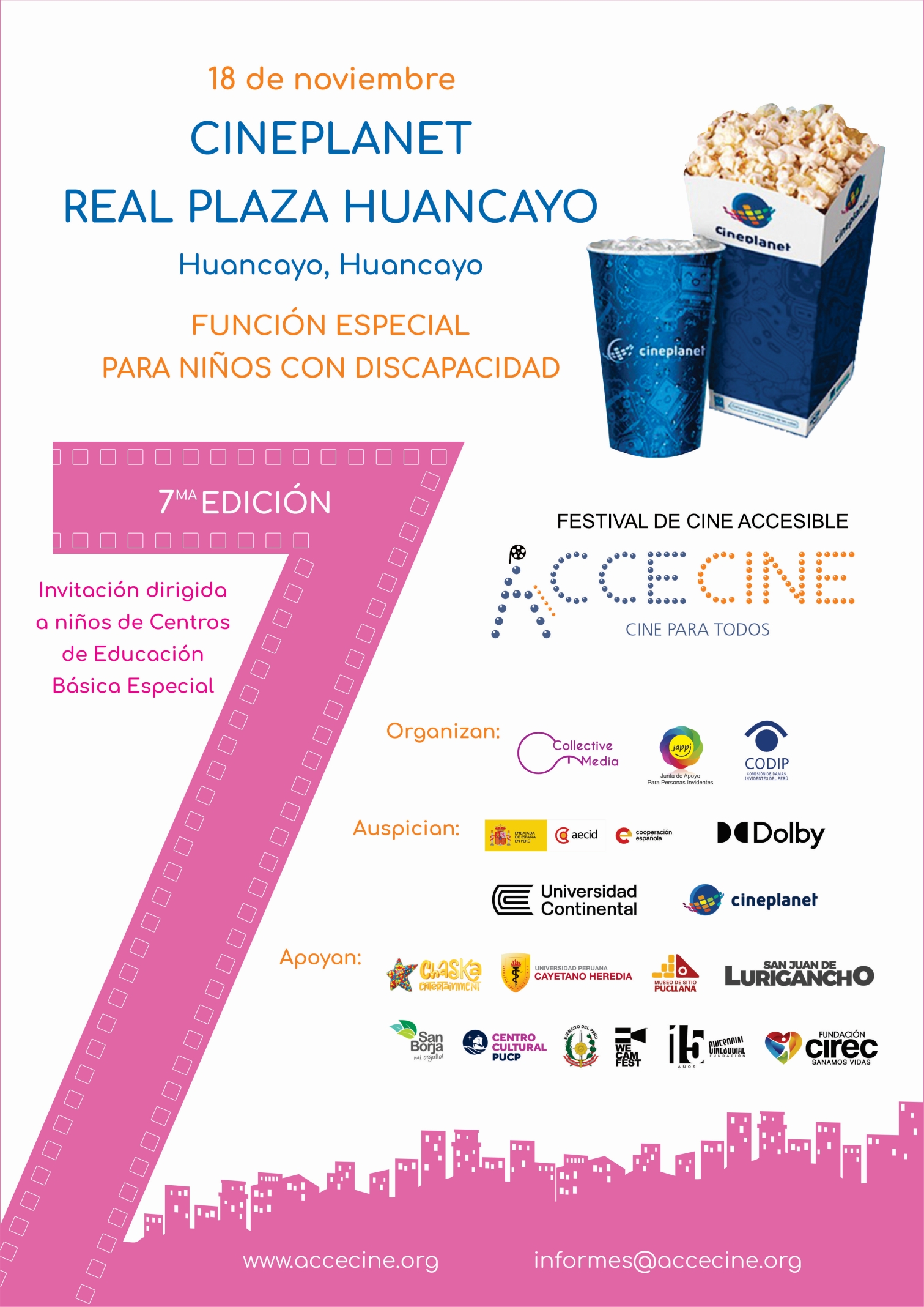 Gracias al apoyo de Cineplanet realizaremos funciones especiales en siete salas de cine de Lima y regiones.